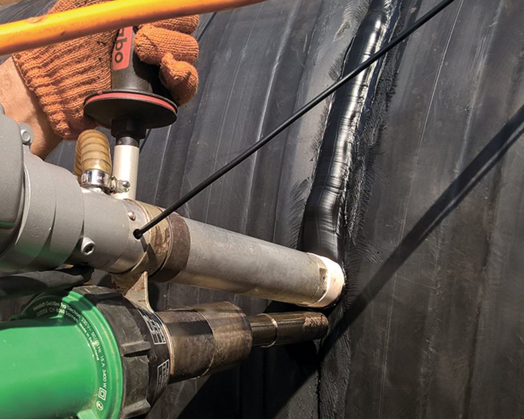 در کاربردهای محیطزیستی مانند لاینرهای دفن زباله، استخرها، و مخازن، جوشکاری از آلودگی خاک و آبهای زیرزمینی جلوگیری میکند.