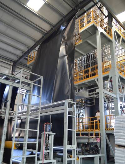 در بالای برج خنککننده، حباب از یک قاب جمعکننده عبور کرده و غلتکهای مخصوص، آن را به سمت پایین هدایت میکنند. در این مرحله، ژئوممبران تا عرض نهایی و قابل استفاده باز شده و خنک میشود.
