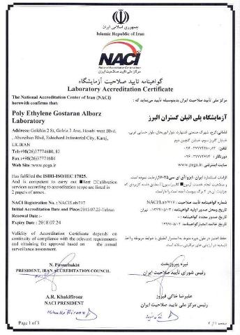 گواهي استاندارد ايزو 17025 از مرکز ملي تأييد صلاحيت ايران (NACI)