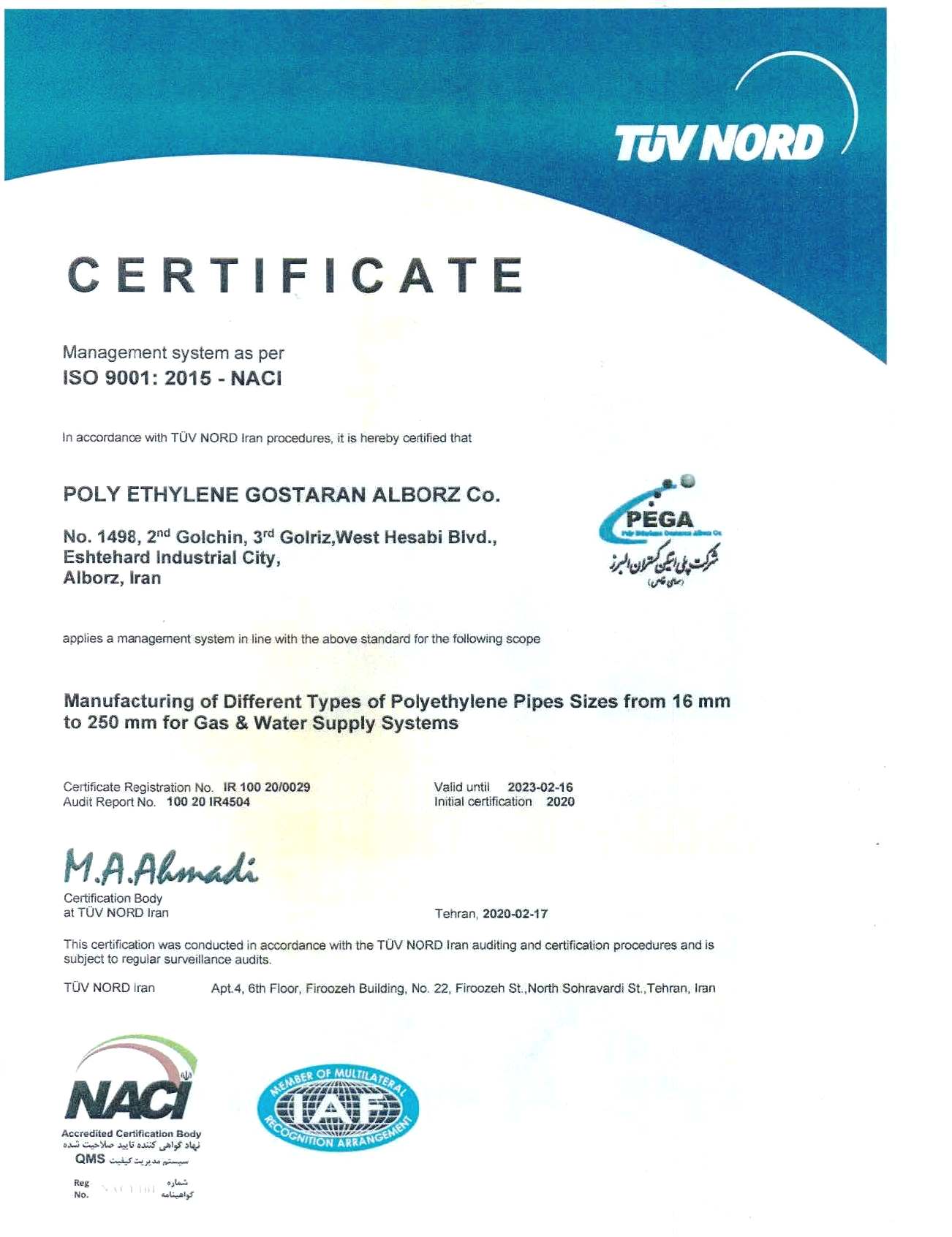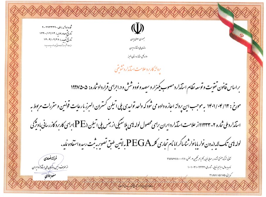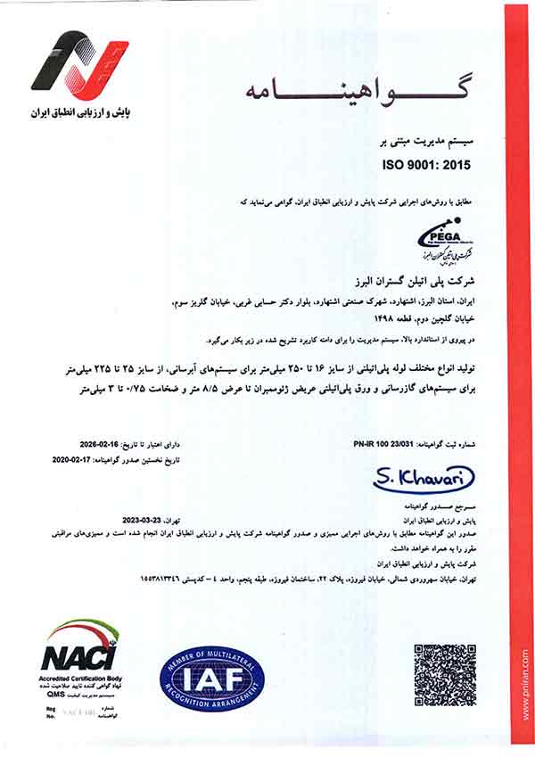 تأیید شرکت ملی گاز ایران برای تولید لوله های پلی اتیلن گاز (رتبه 1)