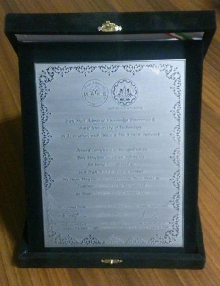 دريافت لوح تقدير بابت حضور در پنجمين دوره جايزه جهاني سازمان دانشي برتر در ايران