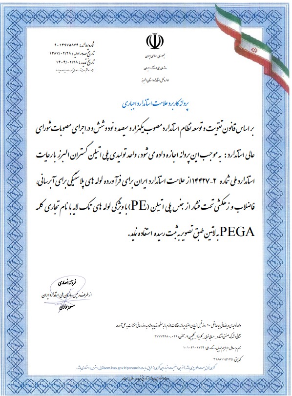 گواهی ثبت از انجمن تولید کنندگان لوله و اتصالات PE ایران