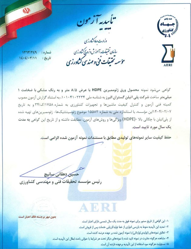 گواهینامه اعتبارسنجی از سازمان ملی استاندارد ایران